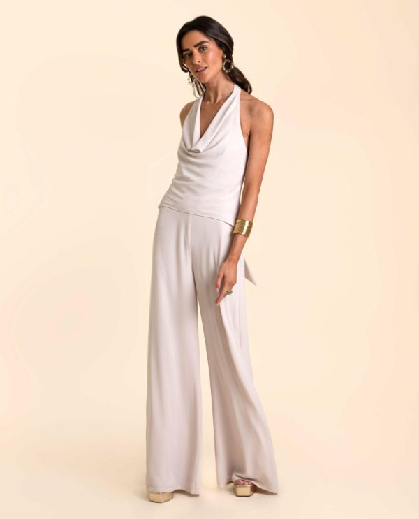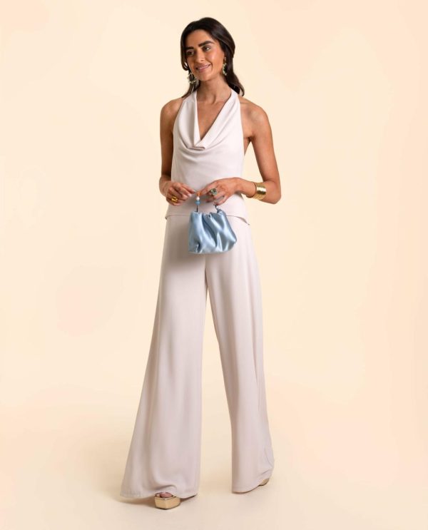 Sabemos que llevabas tiempo esperando este conjunto y por fin ya está disponible! Este conjunto de pantalón y blusa elegante de invitada es una de nuestras joyas de la colección!✨ El tejido es una gasa muy suave con una caída preciosa, por lo que irás muy cómoda, y con forro para que no transparente nada. La blusa es escote halter drapeado y se anuda con un lazo en el cuello y espalda que lo hace más especial aún! Combínalo con nuestras espardeñas o sandalias de tacón y tendrás un lookazo de invitada!
