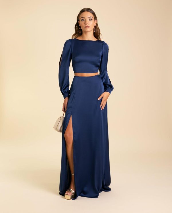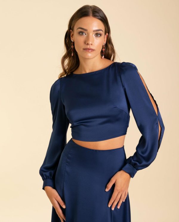 Esta blusa nos parece la mejor opción para hacerte con un dos piezas de invitada muy elegante. La blusa tiene un diseño muy favorecedor, de escote redondo con la espalda abierta que se ajusta perfectamente a ti con una lazada. Confeccionada en un tejido azul satinado, esta blusa destaca por sus mangas abiertas desde el hombro hasta la muñeca. Para una ocasión especial, evento o fiesta, con esta blusa tan especial vas a conseguir elevar cualquier look! Elígela ahora y prueba a combinarla con la Falda Mrs. Vallejo para conseguir el match perfecto.