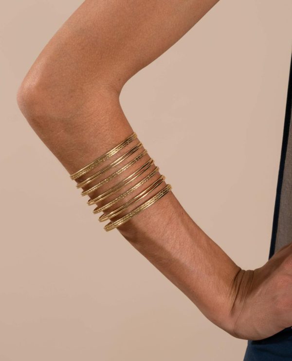 El accesorio perfecto para las que elegís llevar pulseras y brazaletes como joyas protagonistas en vuestros eventos. El Brazalete Allure se caracteriza por sus líneas lisas y con textura diamantada que apostan brillo. ¡Combínalo con otros complementos en dorado!