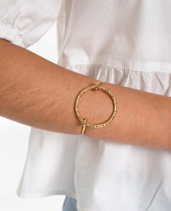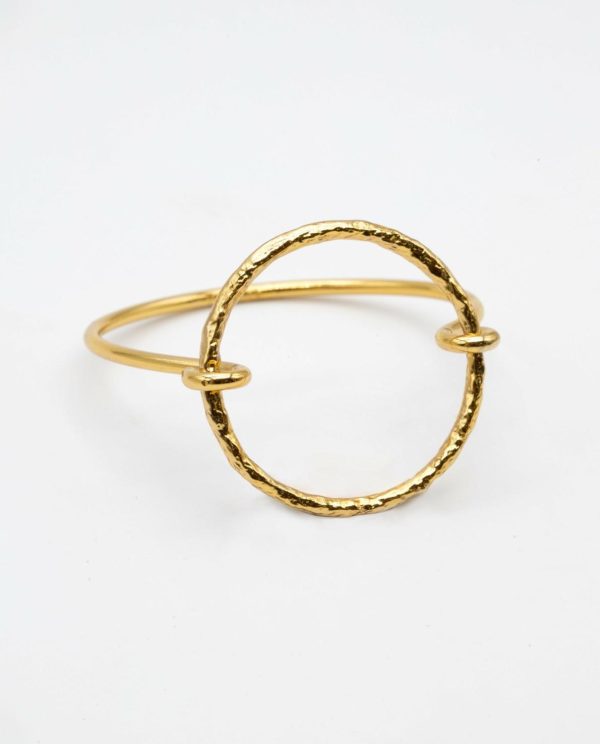 Un brazalete fino y elegante que podrás combinar con cualquier look es el Brazalete Circle bañado en Oro de 18kt. Tiene un poco de textura y su color dorado tiene un brillo muy especial, ideal para tu día a día o una ocasión especial. Es un brazalete perfecto para acompañar con otras pulseras!