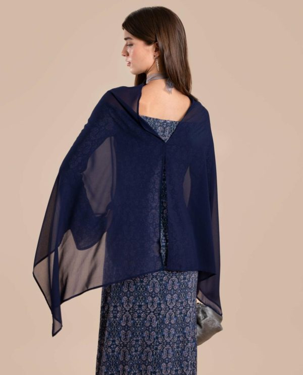 Uno de los complementos más buscados para eventos por su versatilidad y funcionalidad. Esta capa de invitada está confeccionada en un tejido de gasa súper fluido, sedoso y agradable al tacto que elevará cualquier look a otro nivel. Elegimos el color azul marino por lo elegante y favorecedor que sienta, ideal para combinar con cualquier vestido, mono o conjunto de invitada.
