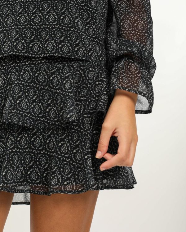 Nos encantan los conjuntos de dos piezas que te pondrías para todo y que puedes llevar tanto junto como por separado. Está confeccionado en un tejido de gasa fluido, con movimiento y su estampado está diseñado por nosotras, por lo que es totalmente único. La falda sienta genial gracias a los volantes en el bajo que le aportan un toque romántico. Combínala con la Blusa Every Time, ponte tus botas fav y lista!