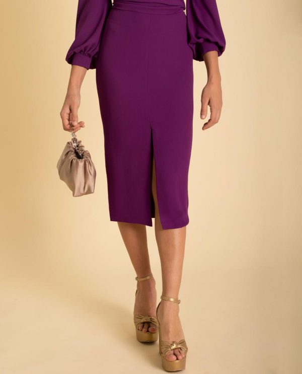 Cuando llega el gran día, elegir un look excepcional es un imprescindible. Por eso, una de nuestras apuestas son los conjuntos de blusa y falda por su versatilidad y estilo. En esta colección, el conjunto Mrs. Pereira tiene ese punto elegante y sexy en su diseño. Su falda midi de tubo queda completamente ajustada y se adapta perfectamente a tu silueta, potenciando tus curvas y resaltando tu figura. Está confeccionada en un tejido gasa morado súper tendencia muy ligero y cómodo que no transparenta nada, vas a sentir que esta falda está hecha a medida para ti! El efecto óptico del total look es un vestido, pero al ser dos piezas podrás darle muchísimo uso. Completa el look con la Blusa Mrs. Pereira para la invitada perfecta.✨