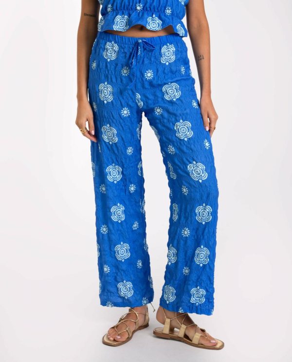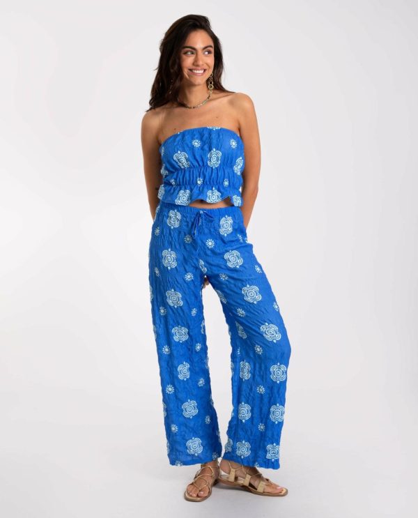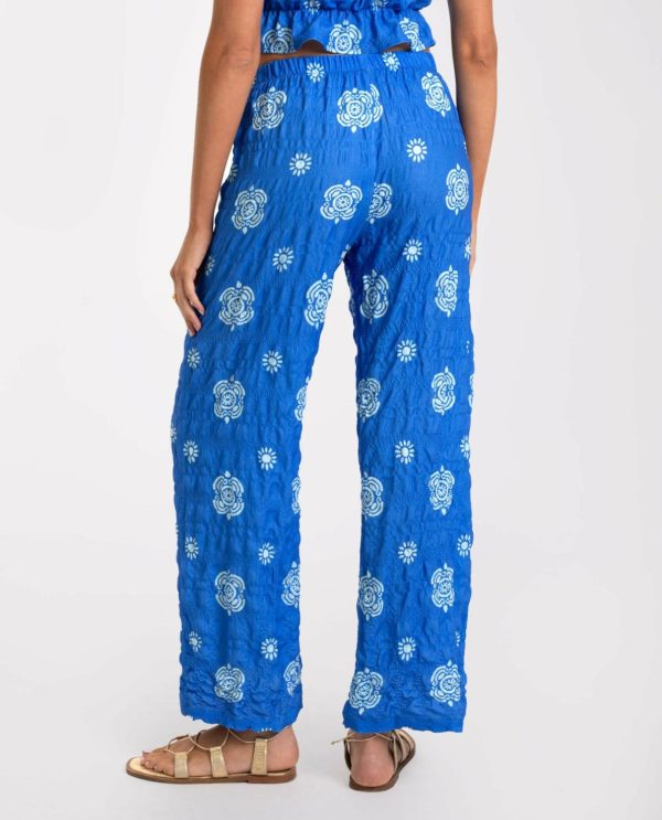 Este conjunto se convertirá en tu nuevo imprescindible del verano porque cuando te lo pruebes no necesitarás nada más! Este total look es uno de los más especiales de la colección por su tejido, patrón y estampado original diseñado por nosotras. Es un pantalón con mucha caída, ligero y muy fresco, ideal para la temporada de verano. La combinación de colores sienta genial en todo tipo de pieles y lo hemos diseñado para que lo lleves muy cómodo gracias a su cintura elástica regulable.