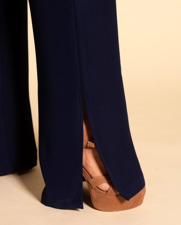 Si tienes un evento especial y buscas un pantalón muy elegante para ir diferente en esta ocasión: sigue leyendo! Gracias al tejido -crep con textura- es un pantalón con mucho cuerpo y caída. Siguiendo la línea palazzo, este es un poco más ajustado de arriba y tiene la pernera ancha. Además, le hemos añadido el detalle de la abertura al final del pantalón, que dejará que se vea el zapato. Póntelo combinado con nuestra Blusa Isolina blanca para un evento especial.✨