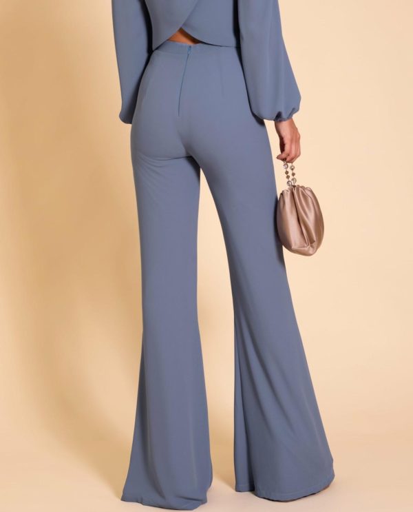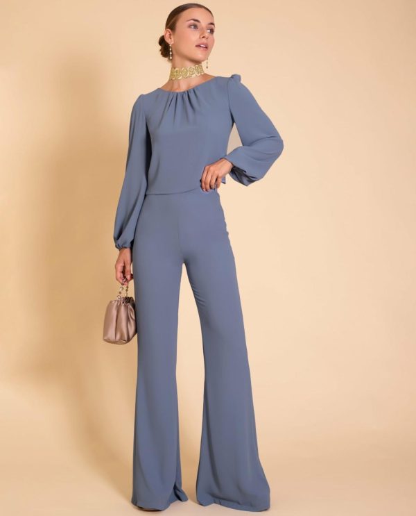 Cada vez son más las invitadas que apuestan por los conjuntos de dos piezas para sus eventos por la versatilidad y comodidad que ofrecen. Este pantalón es una de esas prendas que gracias a su patrón y forma favorece muchísimo. Se ajusta perfectamente a ti, el talle es muy alto y lleva cinturilla para estilizar. El tejido es un crep en color azul que tiene un movimiento precioso al andar. ✨Combínala con la blusa Mrs. Vega para ser la invitada perfecta.