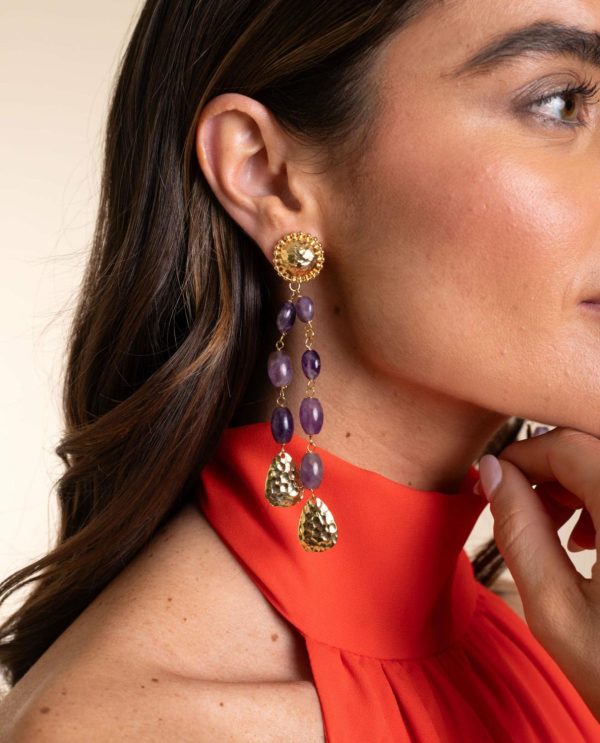 Mujer PENDIENTES DREAM DUO AMETHYST Baño Oro | THE-ARE Pendientes