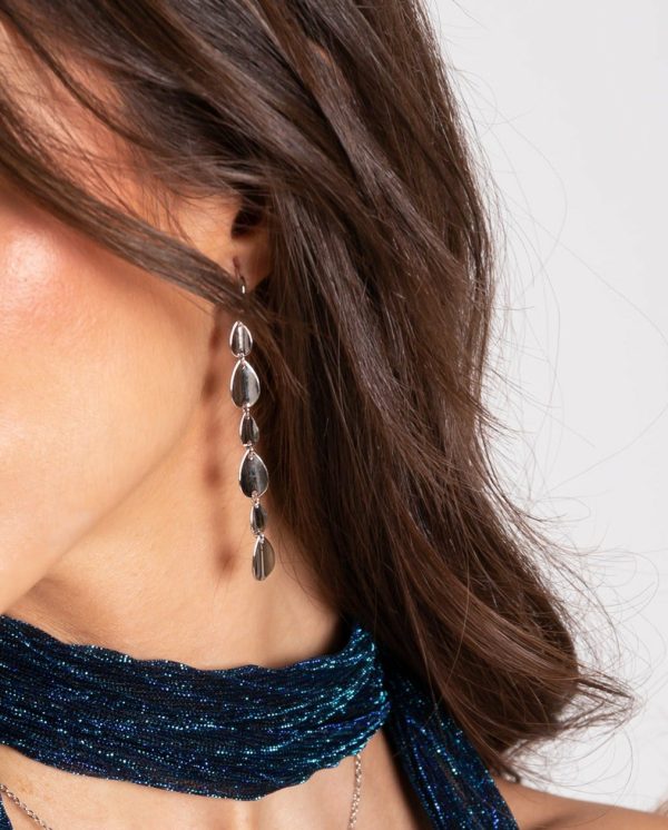 - Pendientes largos plateados.