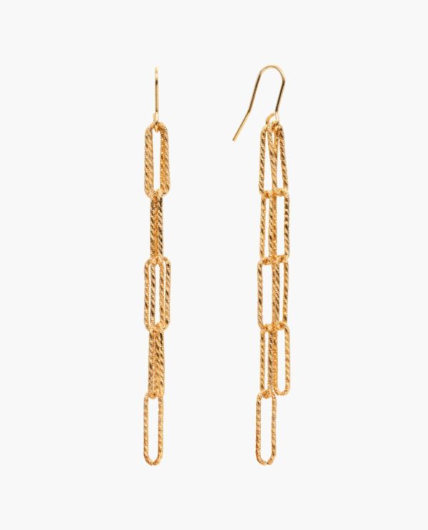 Los pendientes Sands son el centro de atención.✨ Unos pendientes largos con dos cadenas colgantes que añaden un toque elegante y fino a tus looks. Las cadenas tienen una textura rugosa diamantada, bañados en Oro de 18kt por lo que tienen mucho brillo. Unos pendientes perfectos para llevar en ocasiones especiales.