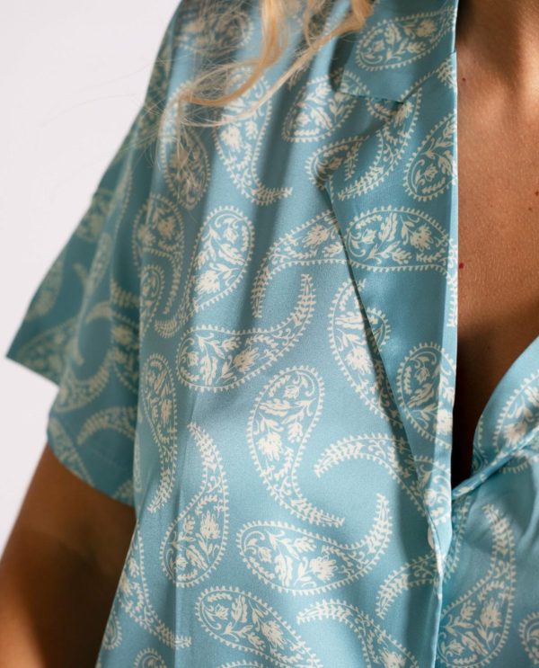 Pantalón de pijama corto con estampado paisley azul. Combínalo con la Camisa Corta del Pijama Blue Mess.