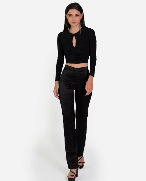 Rita mide 1,70 m. Lleva la talla 34 de pantalón y la XS de top. De esta prenda lleva la talla XS.