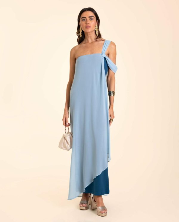 El Vestido Almería es un diseño para esas invitadas que buscan un look elegante, sencillo y original con el que sorprender en su próximo evento. Compuesto por un vestido midi de palabra de honor morado y una capa lila de gasa que contrasta a la perfección y aporta movimiento. La combinación de colores hace que sea un vestido perfecto tanto para eventos de día como de noche, además de que por su diseño favorece la silueta. La capa cae sobre el hombro creando un tirante asimétrico con el detalle de un nudo. Es uno de los favoritos de la colección, así que hazte con él antes de que se agote tu talla!??