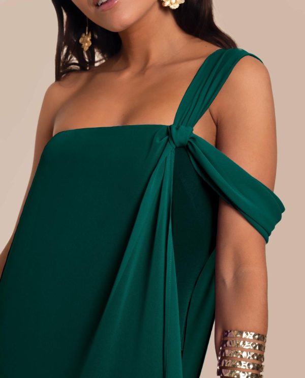 El vestido Almería es un diseño para esas invitadas que buscan un look elegante, sencillo y original con el que sorprender en su próximo evento. Compuesto por un vestido midi de palabra de honor verde esmeralda, perfecto tanto para eventos de día como de noche, y una capa al tono de gasa que aporta movimiento. La capa cae sobre el hombro creando un tirante asimétrico con el detalle de un nudo. Es uno de los favoritos de la colección, así que hazte con él antes de que se agote tu talla!??